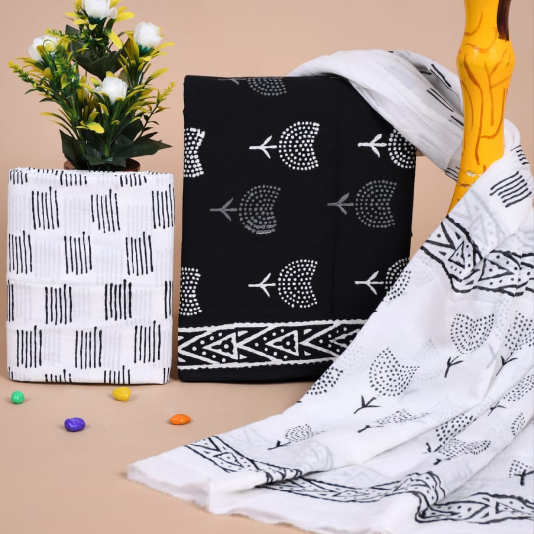 Our Ajrakh and Bagru Silk Suits are beautifully crafted using traditional block-printing techniques and premium silk fabric. Known for their rich patterns, natural dyes, and detailed handcrafted designs, these suits reflect authentic ethnic artistry. They offer a perfect blend of elegance and comfort, making them ideal for festive wear, cultural occasions, and special gatherings. Each piece carries unique prints and fine finishing, giving you a graceful and timeless traditional look.